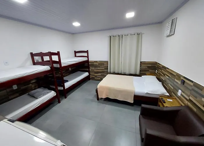 Cantinho Da Vitoria Em Conceicao De Jacarei Hotel Mangaratiba includes 8 rooms and is a 10-minute drive from Sororoca the beach. Guests who stay at this hotel can park their car on site.